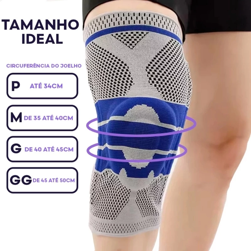 Ajuste Personalizado: Design ajustável que se adapta confortavelmente ao formato do seu joelho.
